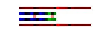 A 25 byte message (red) is compressed to 9 bytes (blue), and then 4 bytes (green) are added for error correction. After corrupting 2 bytes (pink), the message is still decoded correctly.